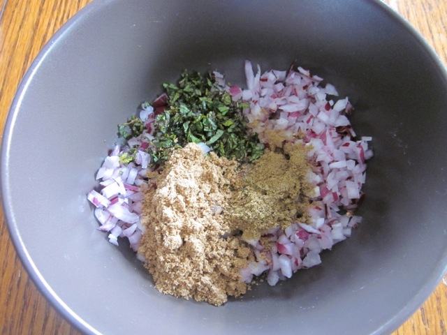 Syrian Onion Bread myfavouritepastime.com_4788Meanwhile, mix the chopped onions with ground cumin, coriander and chopped mint
