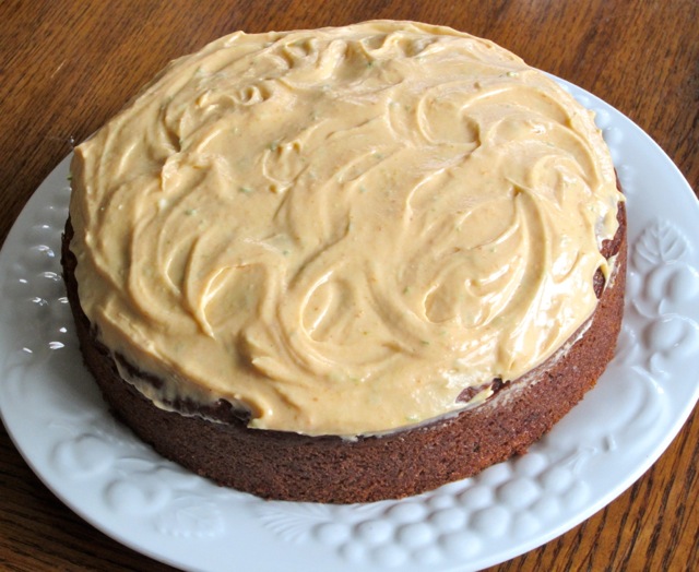 - Cream Cheese Icing: Beat together the cream cheese, lime zest (rind), lime juice and vanilla essence (extract), with an electric mixer. Sift the icing (confectioners) sugar into the cream cheese mixture and stir thoroughly to combine. Add the two tablespoons pumpkin puree and stir to combine. Spread the mixture on top of the cake and serve.