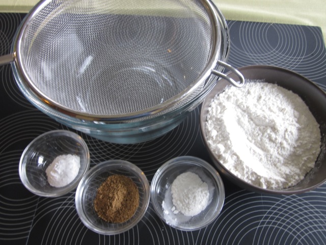 Sift the flour baking powder, baking soda (bicarbonate of soda) and mixed spice into a large bowl.