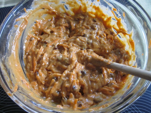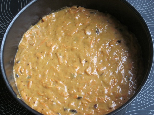 Fold in the carrots, walnuts and currants