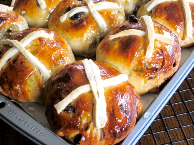 3. It wouldn’t be Easter without a couple of hot cross buns — I just haven’t made them. I fear that, if I did, I’d eat the entire batch. Best buy a few from a bakery. Less chance of over-indulging. Yours here look perfect, Liz. I doubt they’d last a day here. 🙂