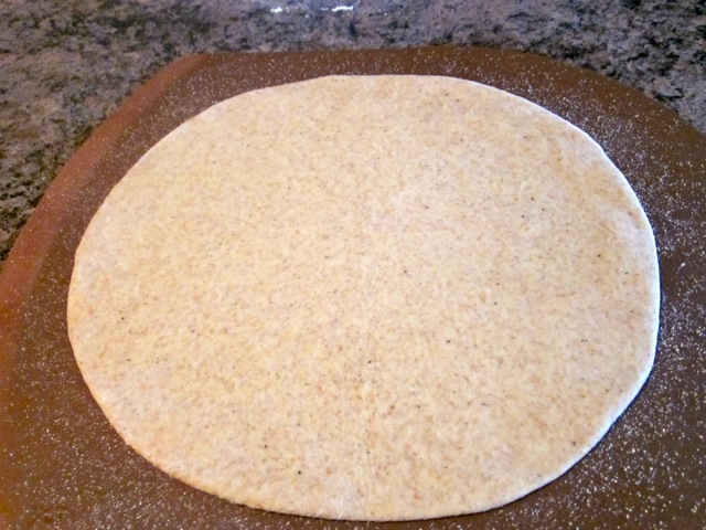 Roll the pizza to desired size and shape. I rolled mine into and extra thin crust