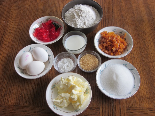 Crunchy Apricot Ginger and Cherry Cake myfavouritepastime.com_4699Please always remember to assemble all ingredients before you start. Sift the flour and baking powder, set aside. Preheat oven to 320°F (160°C). Grease and flour a 9 x 5 inch loaf pan.