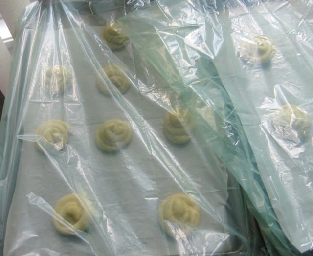 Mallorcan Ensaimadas myfavouritepastime.com_4380Cover with a lightly oiled clear film or transparent bag and leave to rise in a warm place, about 45 minutes, or until doubled in size.