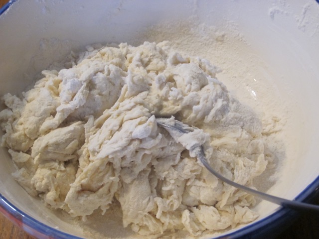 3. Add the melted butter and stir to incorporate, then gradually mix in the rest of the flour to form a dough.