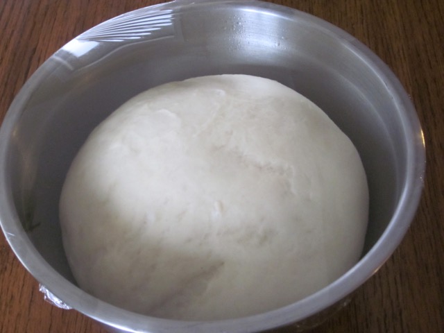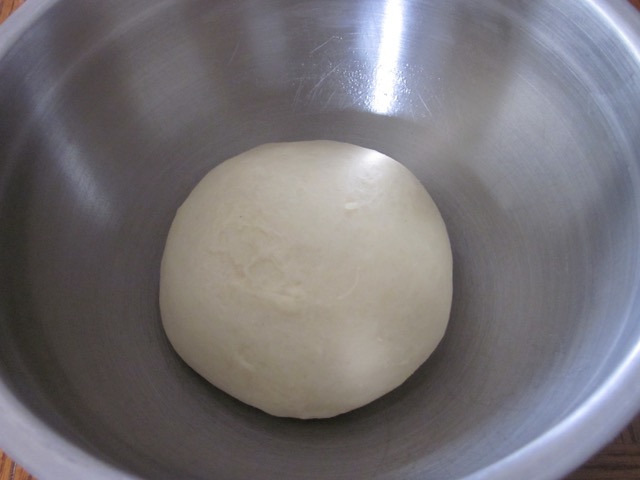 3. Turn the dough on a lightly floured surface and knead 10 minutes until smooth and elastic. Place the dough in a lightly oiled bow, cover with clingfilm and leave in a warm place for 1-1½ hours or until doubled in size.