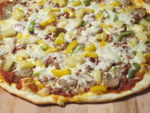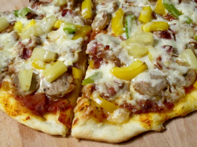 Bacon Sausage Pineapple and Pepper Pizza