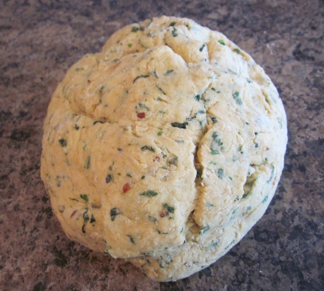 To Make Flatbread Dough: sift the flour, ground coriander, salt and chilli flakes into a large bowl. Add the spinach to the flour and stir throughly to mix in. Make a well in the centre, add olive oil and almost all the water and mix into a soft dough. (add the rest of the water slowly by slowly, only if required)