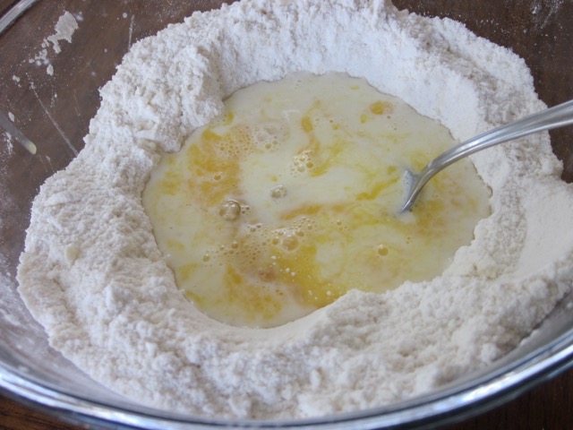 - Sift flour, salt, yeast and sugar into a bowl. Rub in butter until the mixture resemble fine breadcrumbs. Make a well into the centre and add egg, and most of the milk and mix into a smooth almost sticky dough.