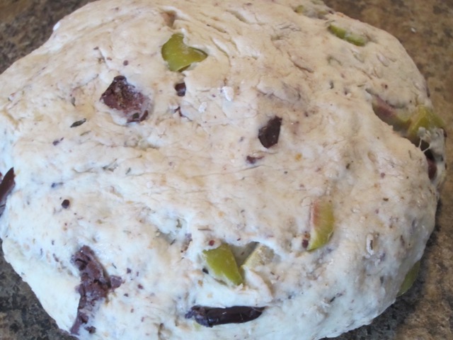 Olive Bread myfavouritepastime.com_4773Turn the dough onto a lightly floured surface and knead 10 minutes until smooth and elastic.