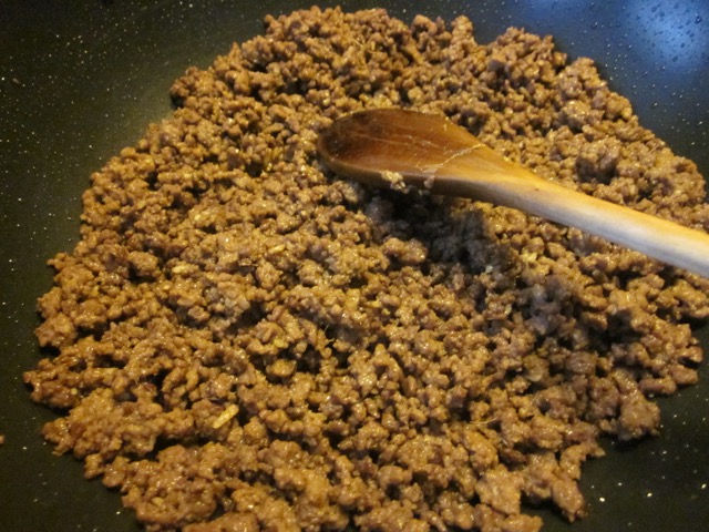 4. Add the marinated beef to the same skillet/wok. Stir and fry over high heat for 10 minutes, until no longer pink and most liquid is absorbed. Drain excess fat.