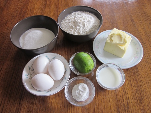 Madeira, is the first cake I ever baked, many years ago, when I started baking. I used to bake it at least once a week. It’s traditionally flavoured with lemon but I’ve always preferred  lime. The basic ingredients are egg, butter, sugar, flour and milk. There are also quite a few recipes that call for ground almonds.