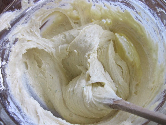 • Beat the butter, sugar and lime zest in a bowl until light and fluffy. Beat in the eggs, one at a time, beating well after each addition. Add a tablespoon of the flour with the last egg to prevent the mixture curdling.