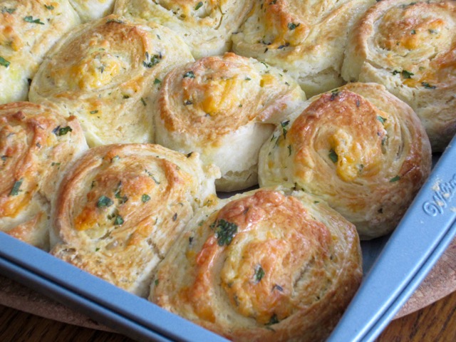 2. These look fantastic, almost like an American biscuit with cheese and herbs rolled up. This would indeed be great with a bowl of soup. I might be making them very soon, I’ve been thinking of something just like this. Maybe I should make a tomato soup to go with it. Good luck with your veggies, I know we already eat a lot and love it!