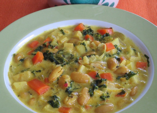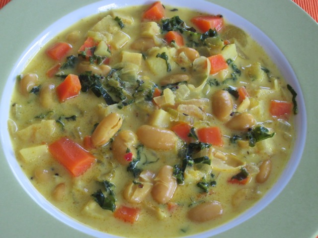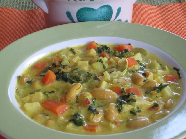 Mixed Vegetable Soup with Cannellini Beans myfavouritepastime.comStir in turmeric and curry powder and cook 1 minute,