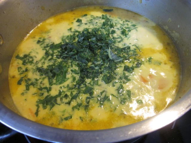 4. Add the spinach or kale and cook for 5 minutes or to your desired doneness. Check seasoning. Add cilantro (coriander) just before serving
