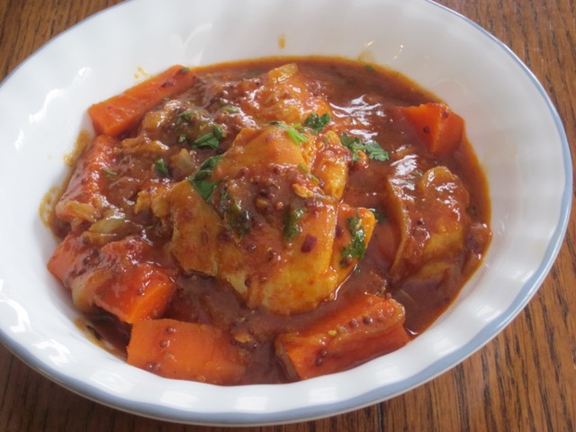 2. Stir in curry paste and mustard seeds and cook 2 minutes until fragrant.