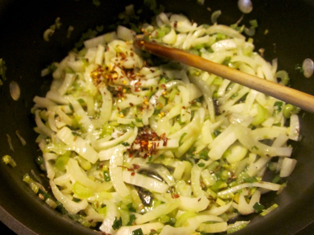 Add the fennel and continue cooking under medium low heat until they soften. Season with salt and pepper.