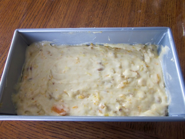 Apricot Orange and Walnut Bread myfavouritepastime.comSpoon the batter into the prepared tin (pan) and bake 50-60 minutes.