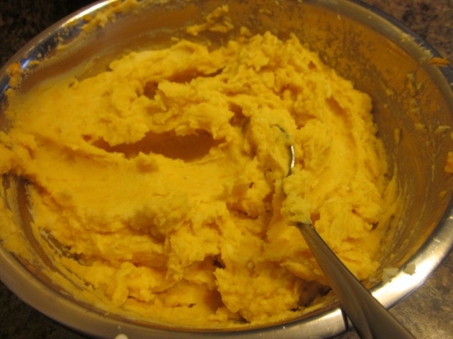 - Boil potatoes in salted water until tender. Mash with the cream and butter. Mix in the two egg yolks and a generous amount of grated Parmesan cheese. Season with salt and pepper.