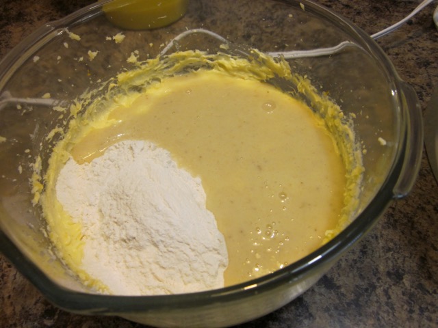 4. Beat butter, sugar and rind with electric mixer until light and fluffy. Beat in eggs one at a time, until combined.