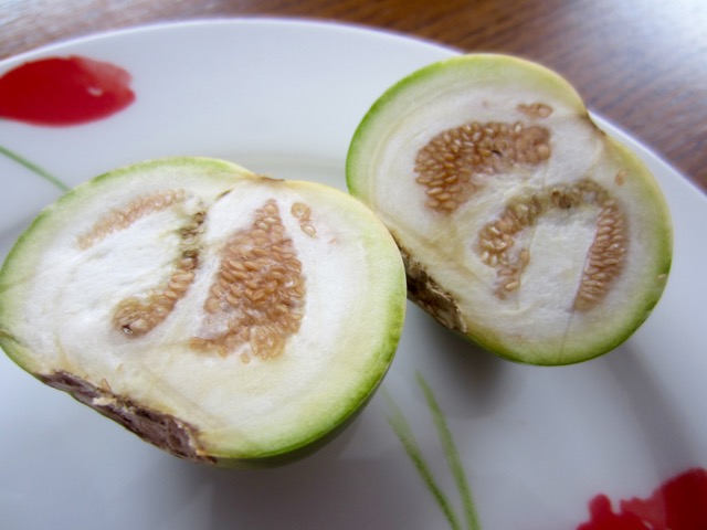 Fruit variously shaped from globose to snake shaped, 2-35cm (1-14inch) long x 2-10cm (1-4 inch) broad, up to 1kg (2.2Ib) in weight.