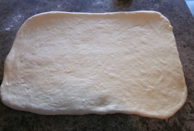 4. Knock back the dough onto a lightly floured surface and roll into a 12 x 16 inch rectangle. Cut into 4 lengthwise and crosswise into 8 pieces as shown in the picture (makes 32).