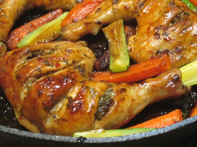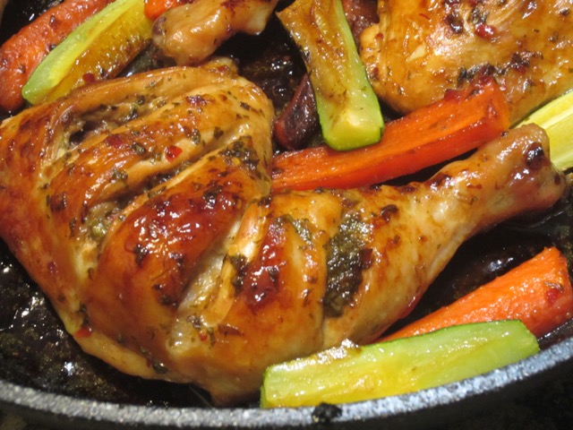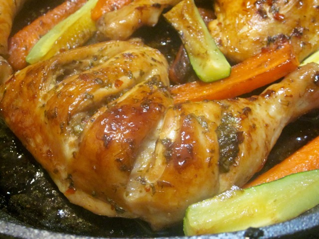 I have been eating lots of roast chicken lately. I always throw in some veggies in the roasting pan. The main ingredients here are lemon, garlic, coriander and honey. Sounds good doesn’t it? Today is a bright sunny day. The sun is fully out. Enjoy the rest of the week!
