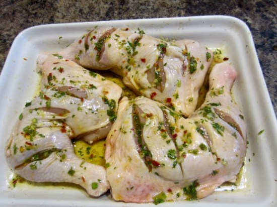 2. Using a sharp knife, make 2-4 deep slits on the chicken. Drizzle of the marinade over the chicken, on both sides. Cover and refrigerate for at least two hours.