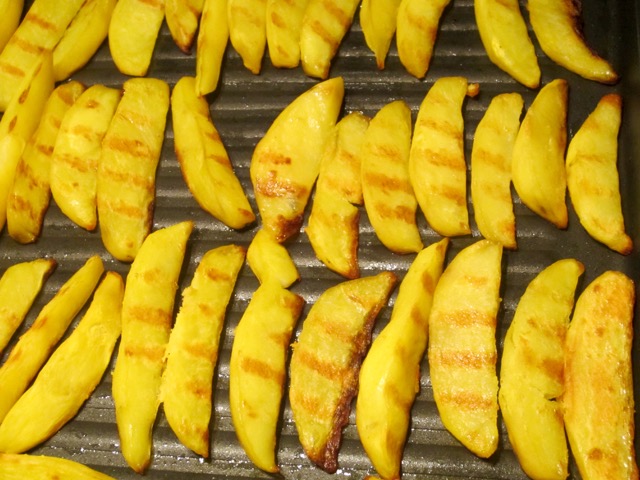 1. Boil water in a pot. Add turmeric powder, chilli powder, salt and potato wedges. Boil potatoes for 4-5 minutes over medium low heat. Drain and transfer on a cooling rack to cool.