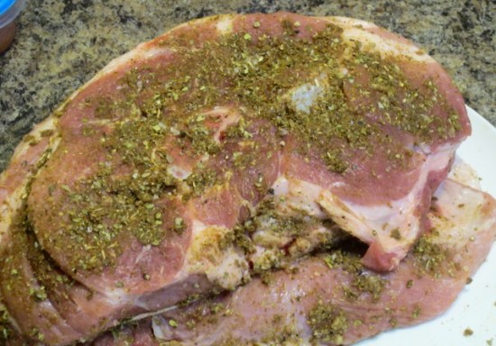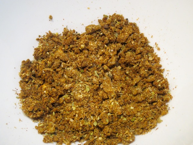 Rub this spice mixture evenly all over the roast with your fingers.