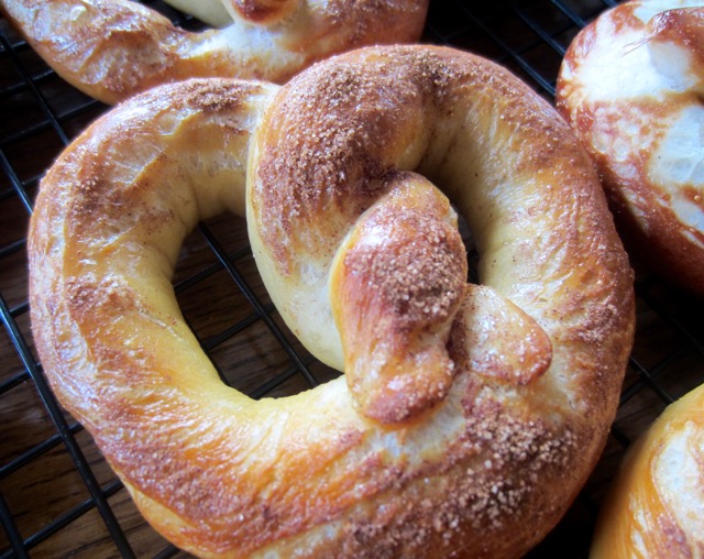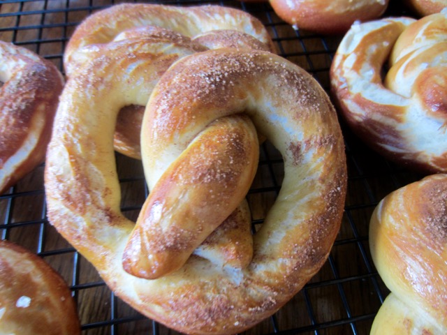 I made these a few days ago. They were really nice I promise you. The most important step in making them is simmering in baking soda (bicarbonate of soda) solution for 30 seconds. Please do not omit this step. Half the pretzels were sprinkled with salt and the other half with cinnamon. My daughter loved the cinnamon ones, I loved the salted ones.  Have a wonderful week, ahead!