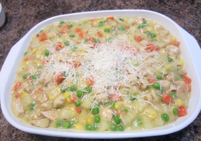 Pour filling into a 2-quart baking dish. Stir in the parmesan.