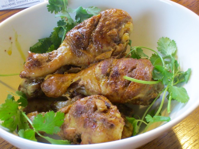My local store always has drumsticks on sale. It’s not really my favourite part of the chicken but I buy it anyway. I have now decided I need to come up with fresh ways of cooking drumsticks so my second take is this simple recipe from Barefeet in the Kitchen . It was easy to make and tasty too.Combine all the spices in a small bowl. Make 2-3 slits on each drumstick. Using your hands, generously rub the spice mix all over the chicken pieces and into the slits and under the skin.