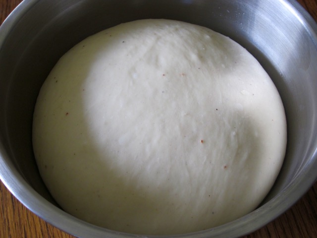 Transfer the dough onto a lightly floured surface and knead about 1 minute until it loses it’s stickiness. Form into ball and place in a lightly oiled bowl. Cover with cling film (plastic wrap), and let stand in a warm place about 1 hour