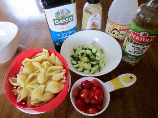 - Cook the pasta in plenty of salted water as per packet instructions. Drain the pasta, transfer to a large serving bowl and toss with some dressing while still hot.