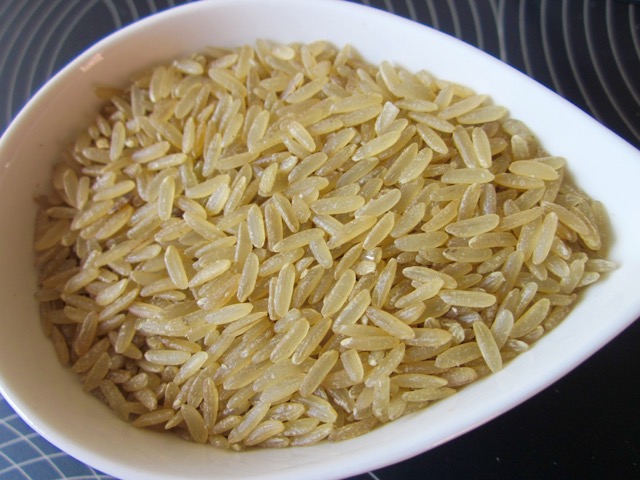 Brown parboiled rice (also called brown converted rice) is rice that has been soaked, steamed under pressure and dried, before milling.