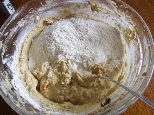 Stir in half the sifted flour with half the milk or sherry, then stir in the remaining flour and sherry.