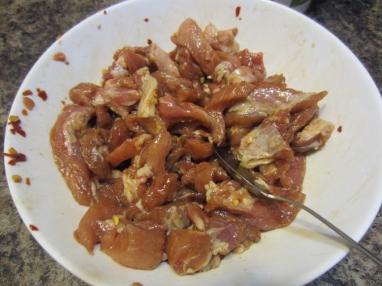 Heat a large wok or skillet over med-high heat until hot, add 2 tablespoons vegetable oil and heat for one minute. Add the marinated pork and cook for about 3-6 minutes, stirring often until no longer pink and browned. Remove with a slotted spoon and set aside.