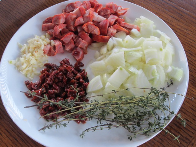 - 1 cured Spanish chorizo, diced into cubes (about 200g (7oz)