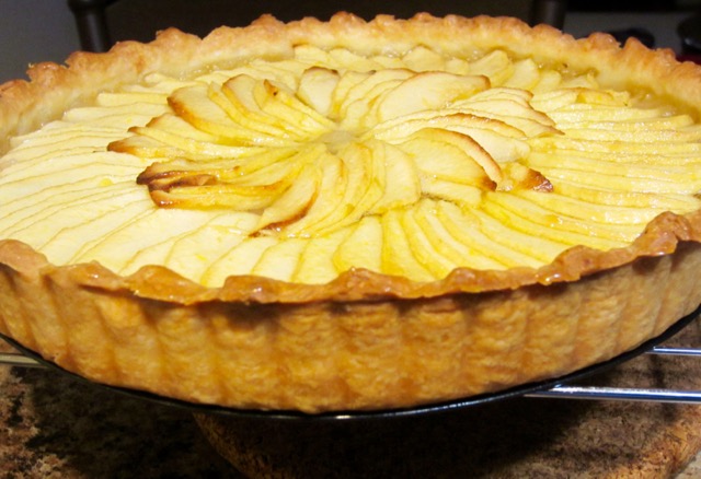 Prick the base of the pastry shell lightly. Pour in the cold apple puree and spread gently with a spoon.
