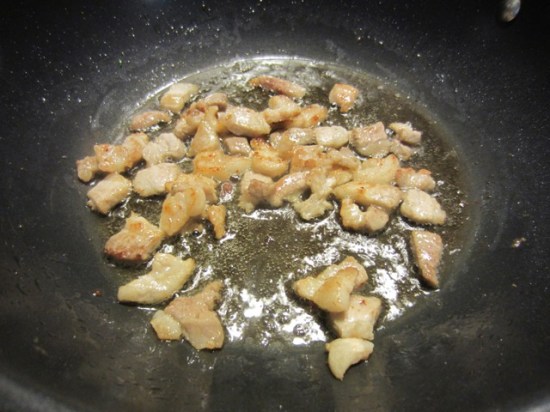 Heat the extra butter in a skillet and saute the pork cubes until golden, then remove and set aside.