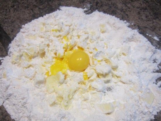 then add the egg yolks and work them in delicately with your fingertips.