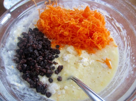 4. Add the egg mixture to the well and stir until just combined (batter should be lumpy-do not over-mix). Gently fold in carrot and currants. Spoon the batter into the prepared muffin pan. Top with extra currants. Bake 25-30 minutes, or until a skewer inserted in the centre comes out clean. I baked for 25 minutes.
