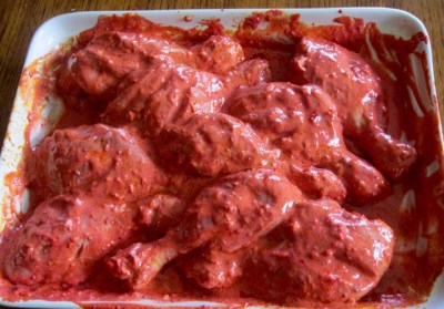 In India, many ingredients are marinated in spiced curdled milk or yoghurt, for example tandoori chicken.