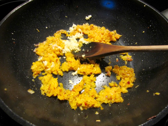 - Add the spices: the chilli flakes, curry powder, cumin, Hungarian paprika and turmeric. Cook for about 5 minutes over low heat. If its too dry add 1-2 tablespoons water.
