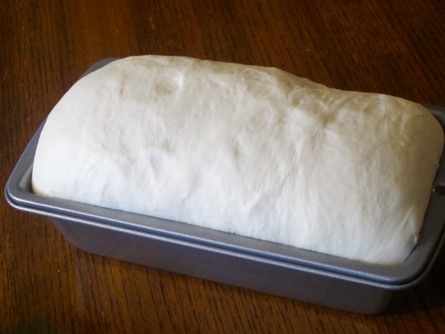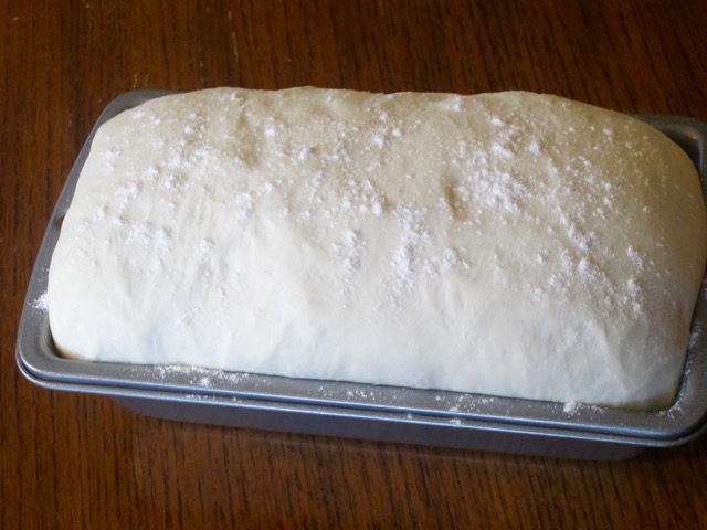 Place the shaped loaves into the prepared loaf pans, cover with a lint free dish towel or cling film or plastic bag and set aside in a draft free place for 45-60 minutes or until doubled in size. (I am still learning how to shape the loaves, professionally-not yet there!)