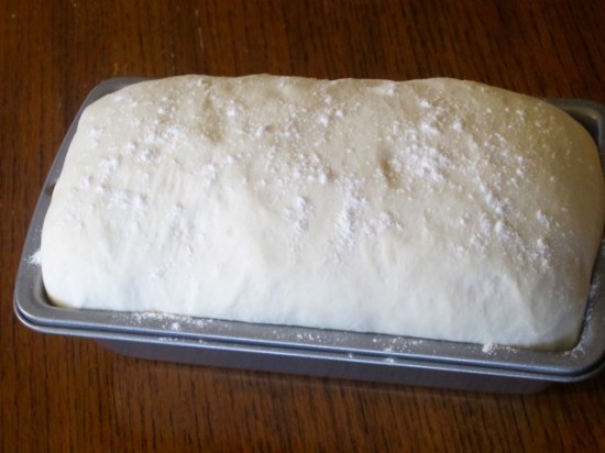 - Moulding and resting the risen dough: with the rounded end of the scraper turn the rested dough onto a lightly floured countertop. Divide the dough into two equal portions and mould each into a loaf shape (watch the video). Place the shaped loaves into the prepared loaf pans, cover with a lint free dish towel or cling film or plastic bag and set aside in a draft free place for 45-60 minutes or until doubled in size.