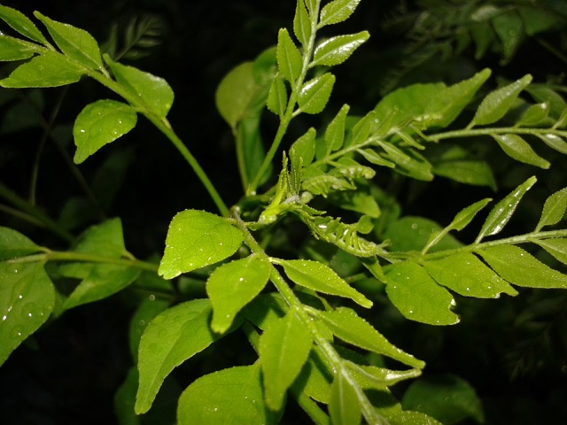 Common Names: Curry Leaves, arbre à feuilles de curry (French), Curry blattbaum (German), Curry orangenrauten (German).