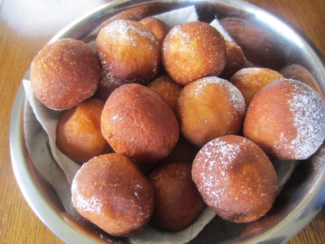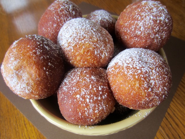 Remove with a slotted spoon and place in a large bowl lined with paper towels. Roll warm beignets in superfine sugar, or sprinkle with confectioner’s (icing) sugar or spoon filling of your choice into a piping fitted with a small nozzle and fill by inserting the nozzle into the beignet.